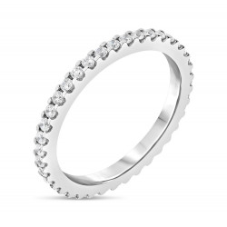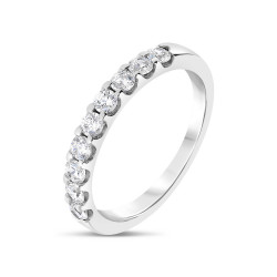 Alliance or blanc palladié 18k sertie de 11 diamants de forme ronde G-SI pour un poids de 0.40ct. Le poids d'or est de 2.2g - La largeur de l'anneau est de 2.5mm