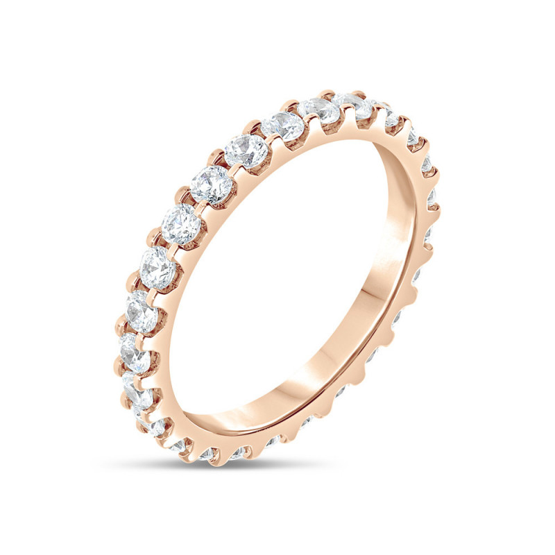 Alliance tour complet or rose 18k sertie de 30 diamants de forme ronde G-SI pour un poids de 1.00ct. Le poids d'or est de 2.9g - La largeur de l'anneau est de 2.5mm