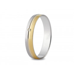 Alliance demi-tour or blanc palladié 18K sertie de 57 diamants de forme brillant G-SI pour un poids de 0.23ct. Le poids d'or est de 2g
