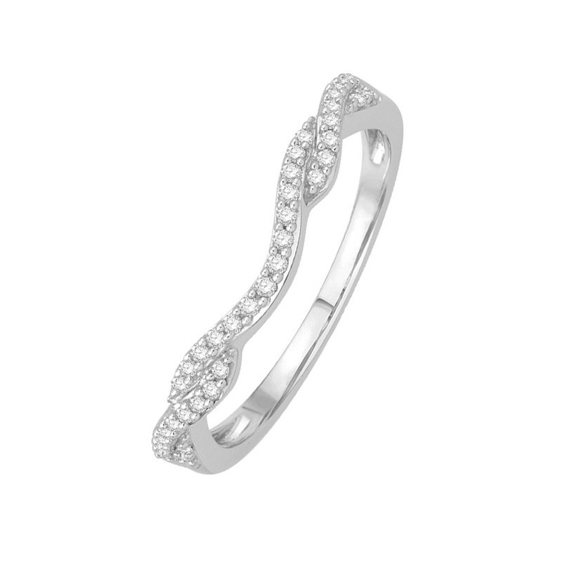 Alliance or blanc palladié 18K sertie de 36 diamants de forme brillant G-SI pour un poids de 0.15ct. Le poids d'or est de 2.5g