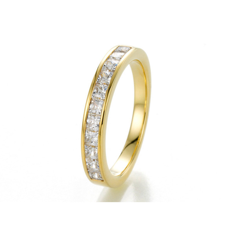 Alliance demi-tour or jaune 18K sertie de 13 diamants de forme princesse G-VS pour un poids de 0.33ct. Le poids d'or est de 2.71g