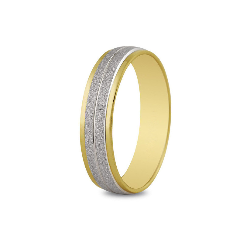 Alliance 2 ors 18K d'une largeur de 4.6mm. Le poid d'or est de 3.84g. La finition est striée