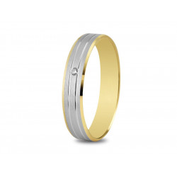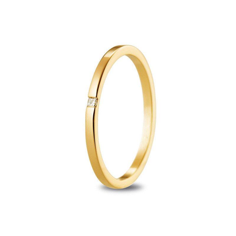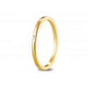 Alliance or jaune 18K d'une largeur de 1.65mm sertie de 1 diamant de forme princesse G-SI pour un poids de 0.02ct. Le poid d'or est de 2.38g. La finition est ruban