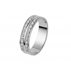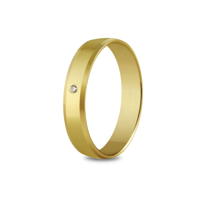 Alliance or jaune 18K d'une largeur de 4mm sertie de 1 diamant de forme brillant G-SI pour un poids de 0.01ct. Le poid d'or est de 3.1g