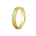Alliance or jaune 18K d'une largeur de 4mm sertie de 2 diamants de forme brillant G-SI pour un poids de 0.015ct. Le poid d'or est de 3.72g. La finition est mate