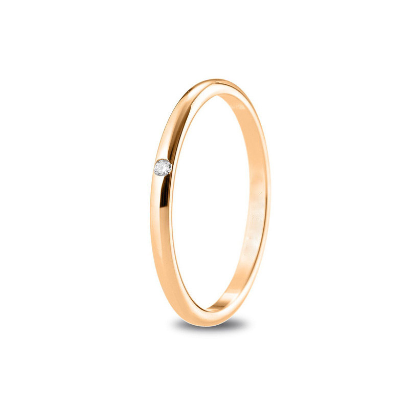 Alliance or rose 18K d'une largeur de 1.8mm sertie de 1 diamant de forme brillant G-SI pour un poids de 0.015ct. Le poid d'or est de 2.38g
