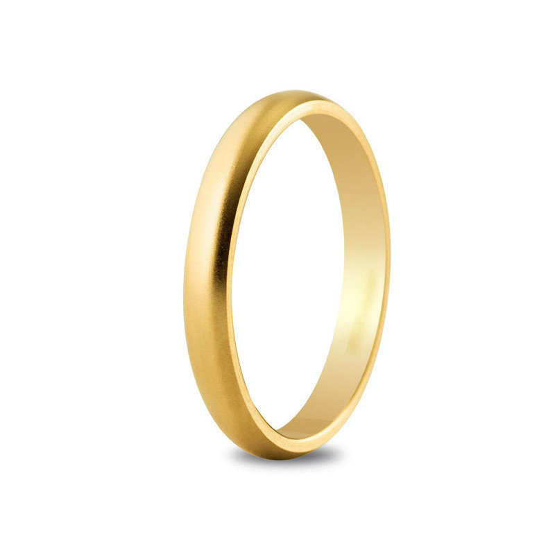 Alliance or jaune 18K d'une largeur de 3mm. Le poid d'or est de 3.9g. La finition est sablée