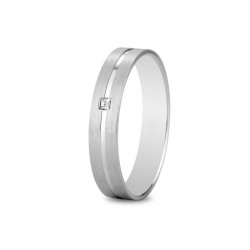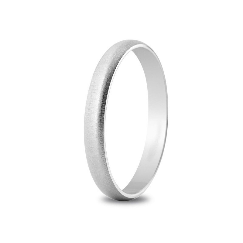 Alliance or blanc palladié 18K d'une largeur de 3mm. Le poid d'or est de 2.8g. La finition est mate