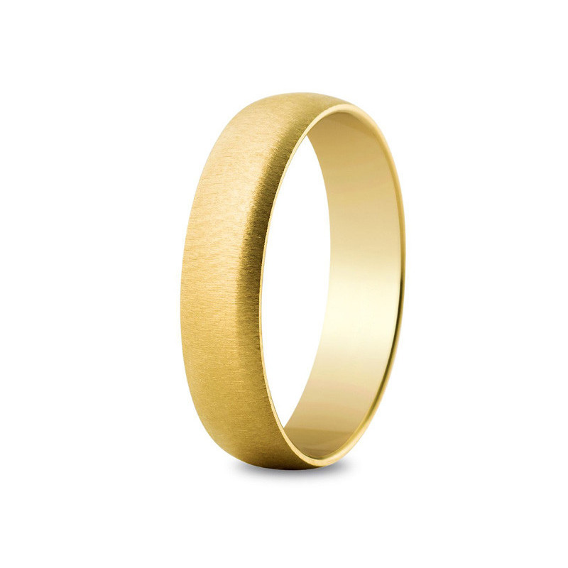 Alliance or jaune 18K d'une largeur de 5mm. Le poid d'or est de 4.62g. La finition est mate