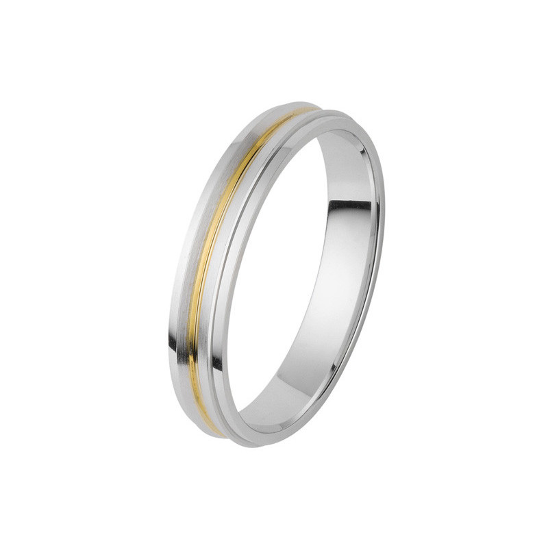 Alliance 2 ors 18K d'une largeur de 4.5 mm. Le poid d'or est de 4.73g. La finition est striée