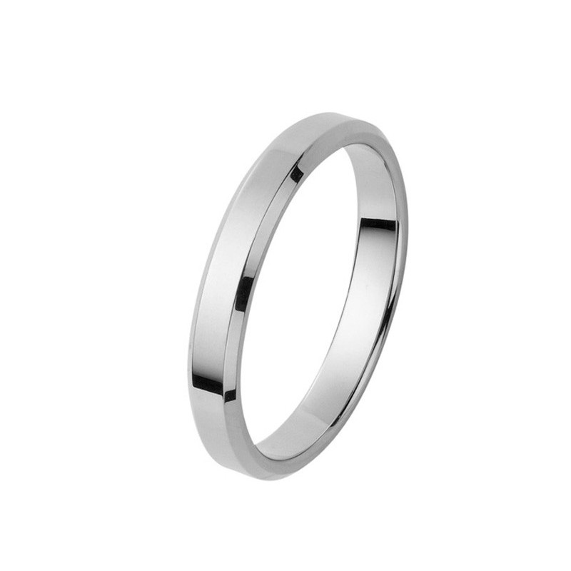 Alliance or blanc palladié 18K d'une largeur de 2 mm. Le poid d'or est de 2.15g. La finition est ruban