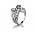 Bague or blanc palladié 18K sertie de deux topazes bleues de forme ovale de 0.40ct chacune. d'un saphir de forme ovale de 0.50ct et d'un pava e de 13 diamants G-SI pour un poids de 0.13ct. Le poids d'or de la Bague est de 4.35g