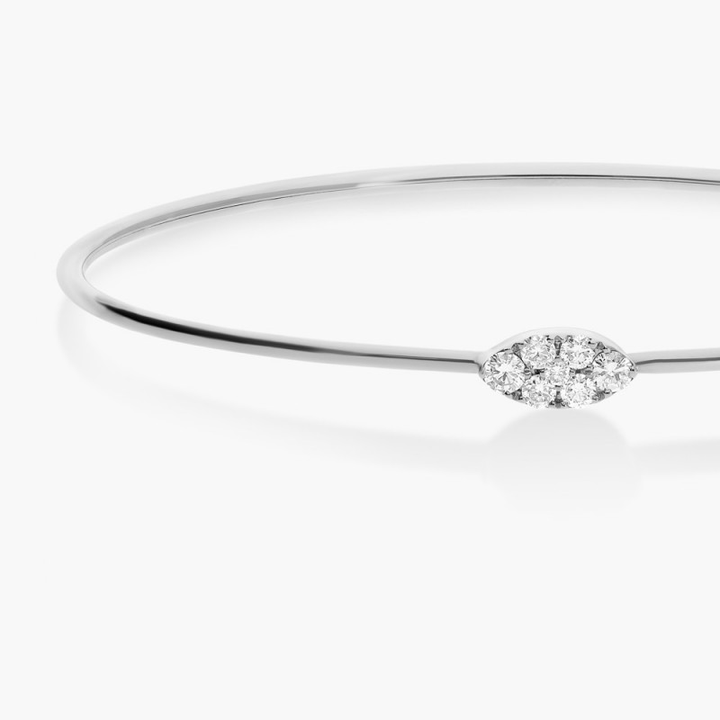 Bracelet or blanc palladié 18K serti de 7 diamants de forme ronde G-SI pour un poids de 0.30ct. Le poids d'or est de 3.6g - Le diamètre est de 60*50mm