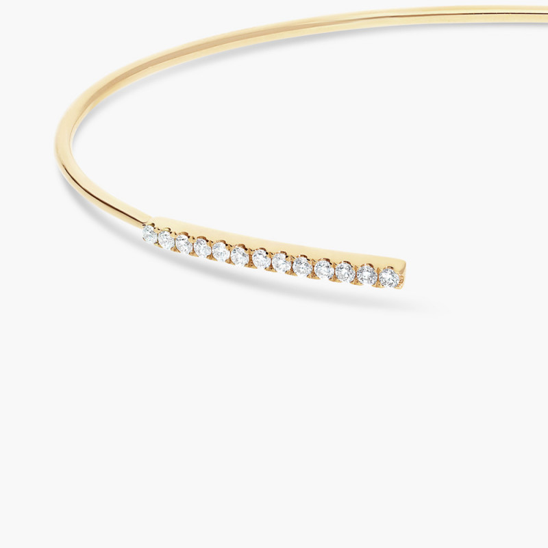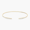 Bracelet or jaune 18K serti de 18 diamants de forme ronde et baguette G-SI pour un poids de 0.36ct. Le poids d'or est de 3.5g - Le diamètre est de 58*48mm