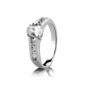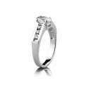 Solitaire épaulé platine serti de 1 diamant de 0.25ct de forme ovale G-SI. Epaulé de 6 diamants de forme brillant pour un poids de 0.43ct Le poids de platine est de 7g