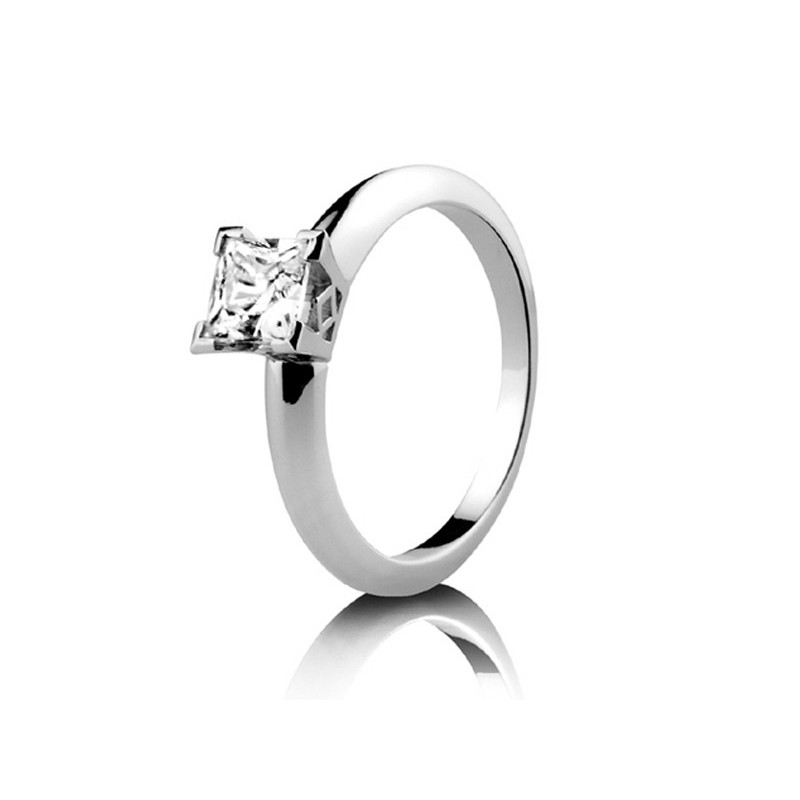 Solitaire or blanc palladié 18K serti de 1 diamant de 0.30ct de forme princesse G-SI. Le poids d'or est de 3.9g
