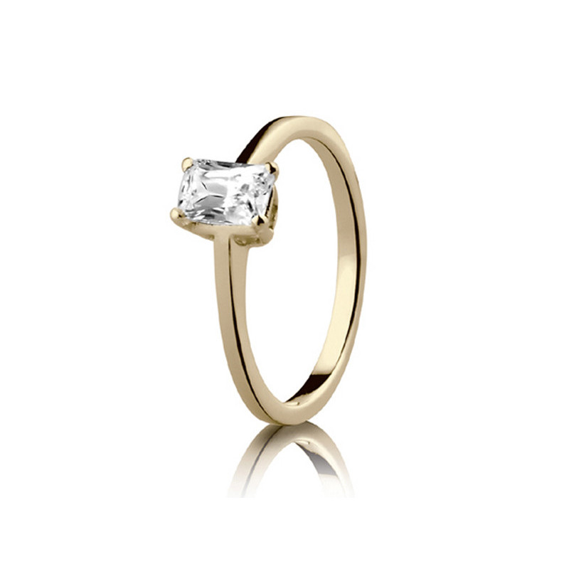 Solitaire or jaune 18K serti de 1 diamant de 0.25ct de forme émeraude G-SI. Le poids d'or est de 3.4g