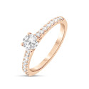 Solitaire épaulé or rose 18K serti de 17 diamants G-SI pour un poids de 0.43ct. Le poids de la pierre centrale de forme ronde est de 0.20ct. Le poids d'or est de 2.4g - La largeur de l'anneau est de 1.8mm