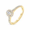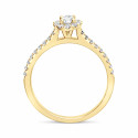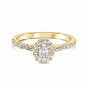 Solitaire épaulé or jaune 18K serti de 31 diamants G-SI pour un poids de 0.52ct. Le poids de la pierre centrale de forme ovale est de 0.25ct. Le poids d'or est de 3g - La largeur de l'anneau est de 1.7mm