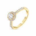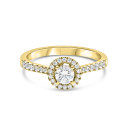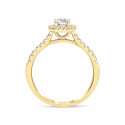 Solitaire épaulé or jaune 18K serti de 33 diamants G-SI pour un poids de 0.39ct. Le poids de la pierre centrale de forme ronde est de 0.20ct. Le poids d'or est de 2.8g - La largeur de l'anneau est de 1.8mm