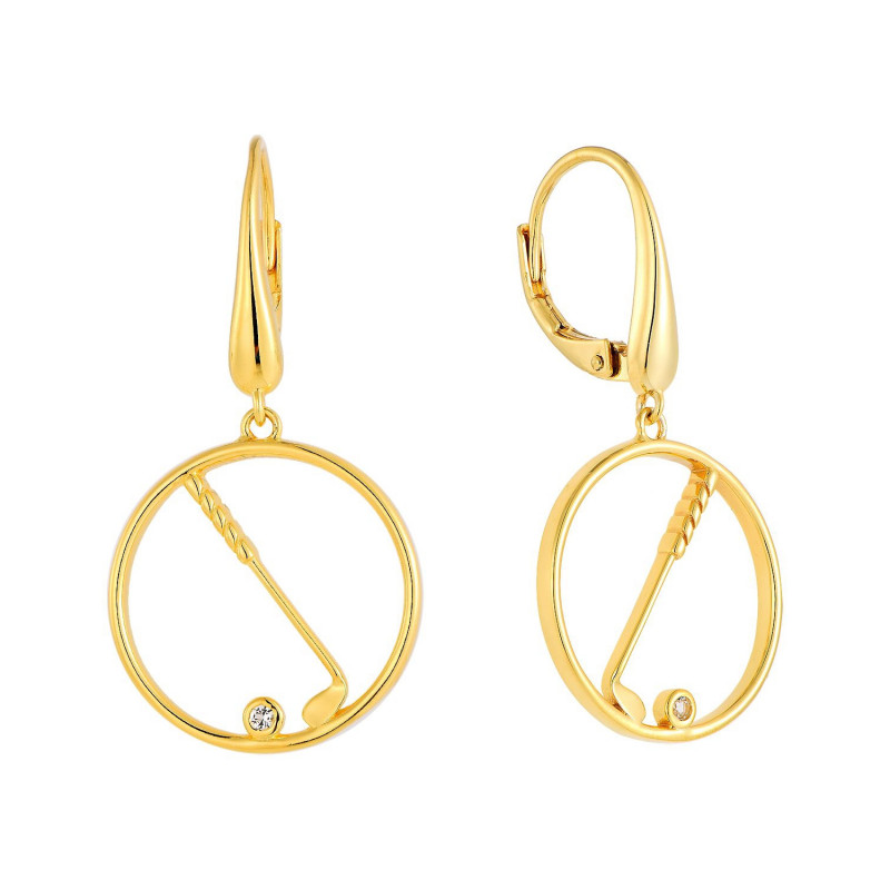 Boucles d'oreilles pendantes en argent 925‰ avec finition dorée et ornée de 2 topazes blanches, pour un poids de 3,8gr. - Fermoir col de cygne. Les topazes blanches, subtilement placées à la place de la balle de golf, apportent une touche précieuse et élégante à ce bijou raffiné.