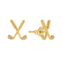 Boucles d'oreilles petit modèle en argent 925‰ avec finition dorée et ornée de 8 topazes blanches, pour un poids de 1gr. - Fermoir belge. Les topazes blanches, subtilement placées sur les clubs de golf, apportent une touche précieuse et élégante à ce bijou raffiné.
