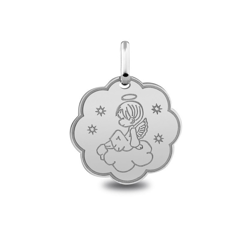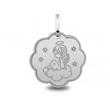 Médaille Ange nuage or blanc palladié 18K laser d'un diamétre de 16mm. Le poid d'or est de 1.20g