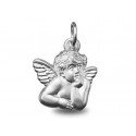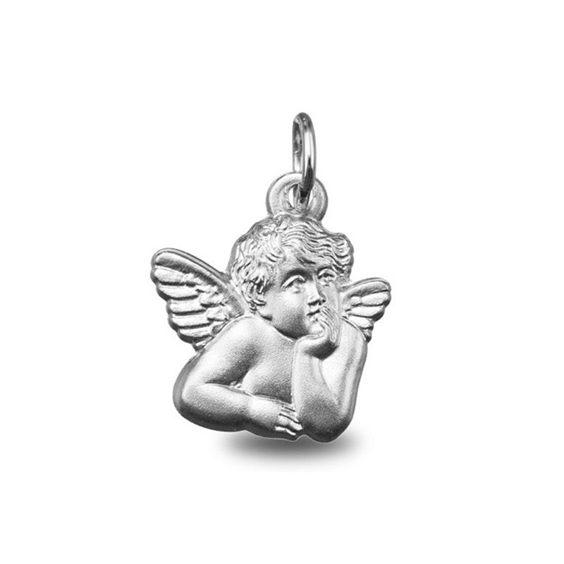 Médaille Ange Raphael or blanc palladié 18K silhouette d'un diamétre de 11X12mm. Le poid d'or est de 0.90g