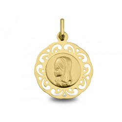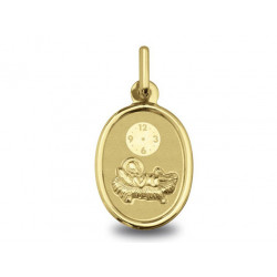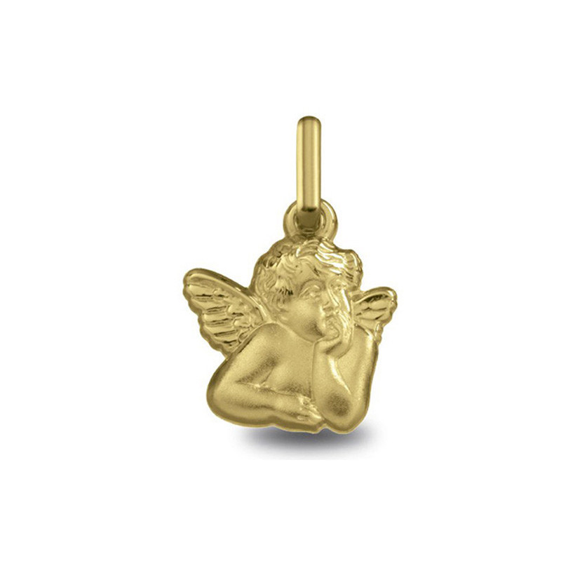 Médaille Ange Raphael or jaune 18K silhouette d'un diamétre de 11mm. Le poid d'or est de 1.00g
