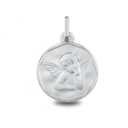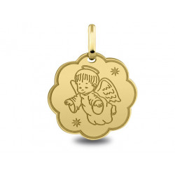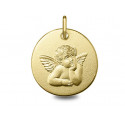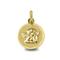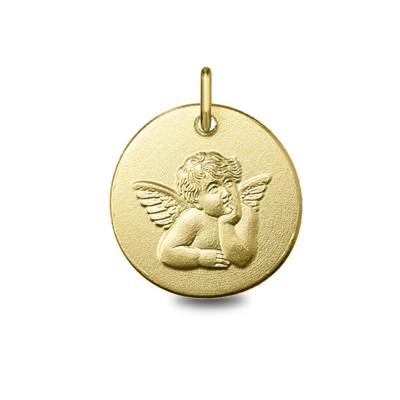 Médaille Ange Raphael or jaune 18K mat d'un diamétre de 14.5mm. Le poid d'or est de 1.40g