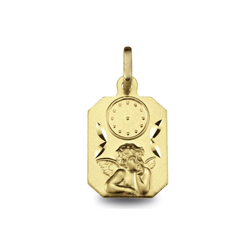 Médaille Ange or jaune avec horloge pour indiquer l'heure de naissance et pour un poids de 1.40g - Médaille vendue sans chaine