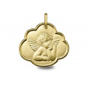 Médaille Ange Raphael or jaune 18K biseautée d'un diamétre de 16X14mm. Le poid d'or est de 1.40g
