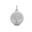 Médaille Arbre de vie or blanc palladié 18K d'un diamétre de 18mm. Le poid d'or est de 2.20g
