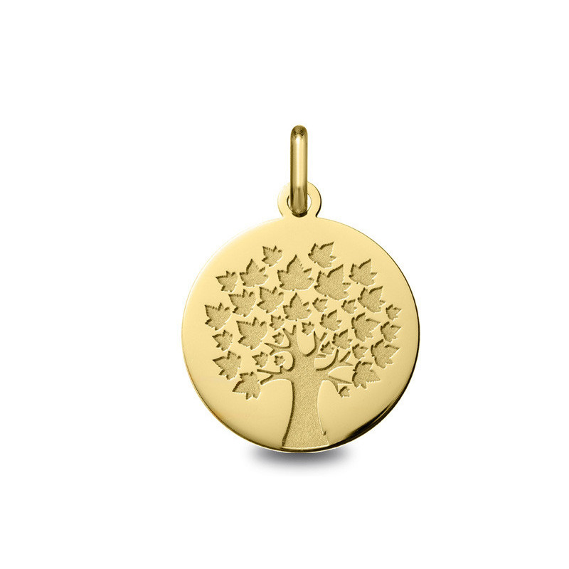 Médaille Arbre de vie or jaune 18K d'un diamétre de 18mm. Le poid d'or est de 1.85g